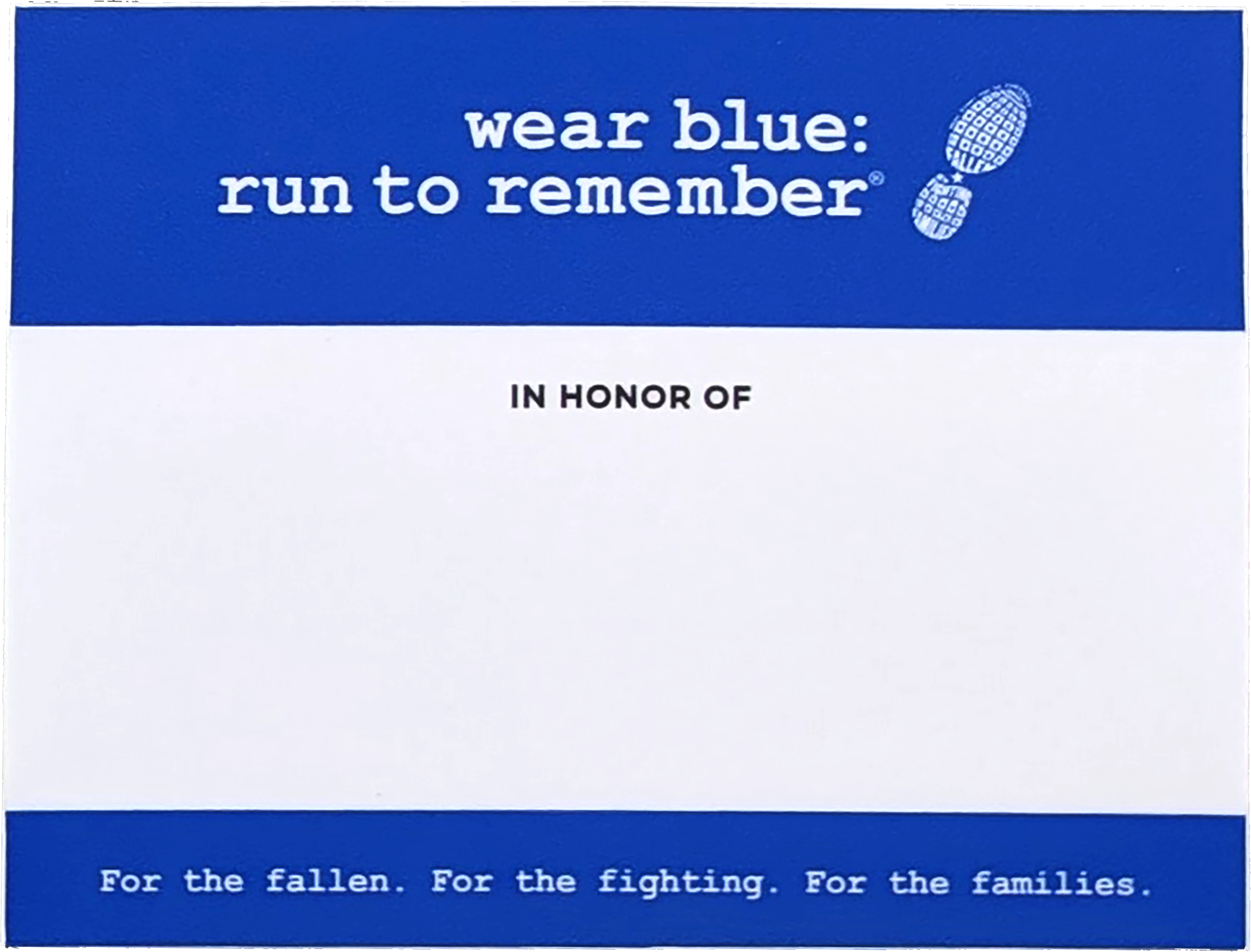 “In Honor Of” dedication sticker – a space to remember and honor those who have fallen